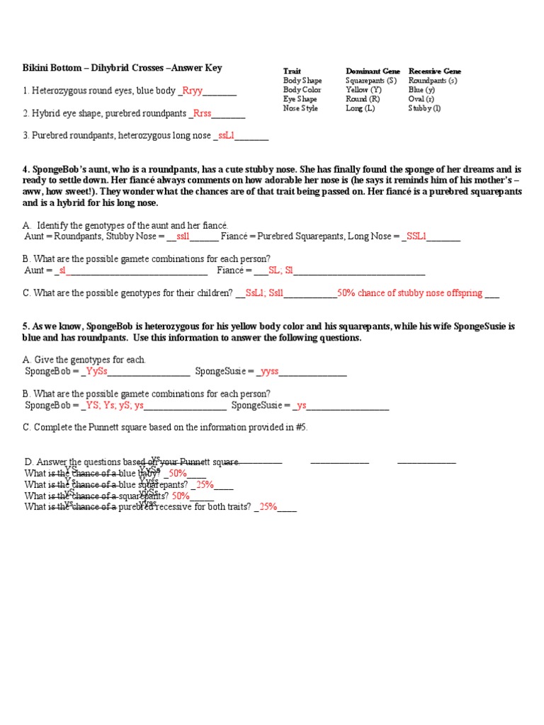 I'm not in school, just studying with my partner and want to be sure we aren't agreeing on a wrong answer together spongebob genetics answer key. Spongebob loves growing flowers for his pal sandy.